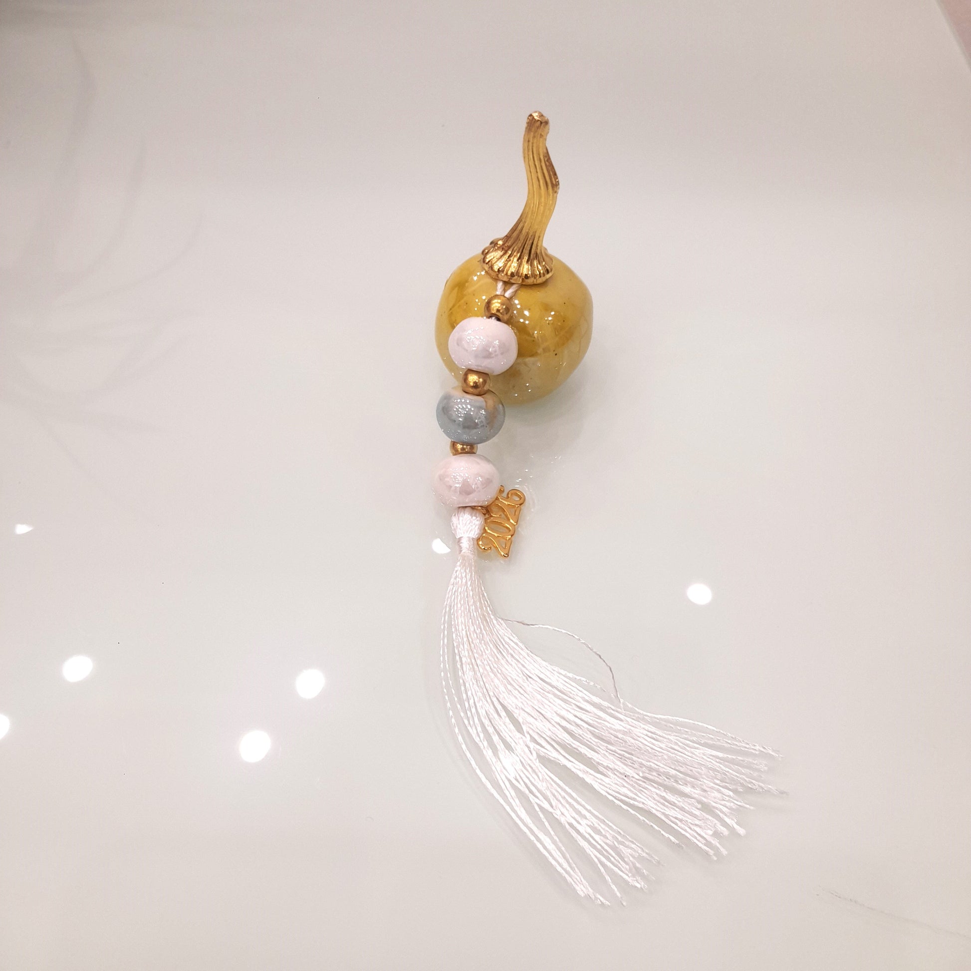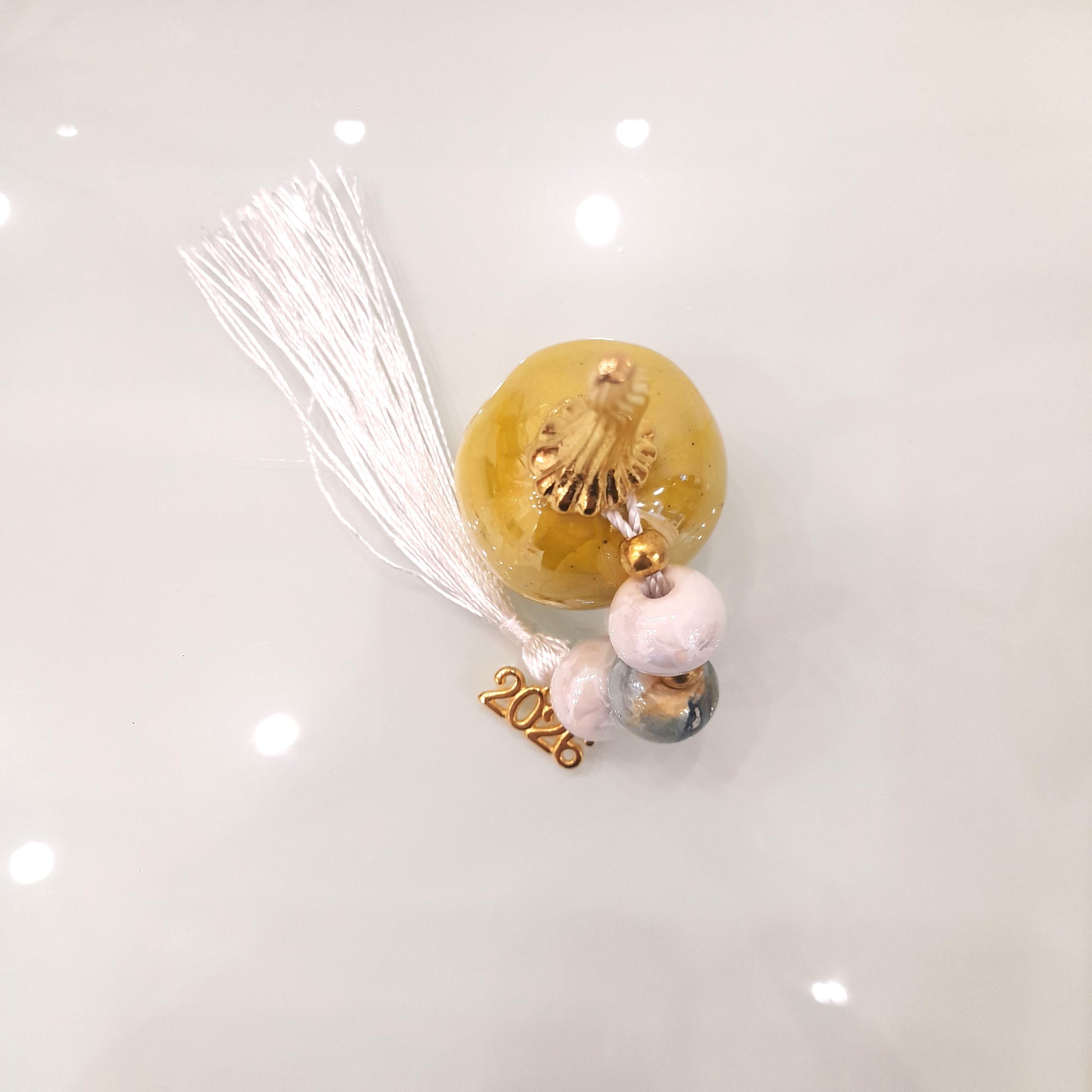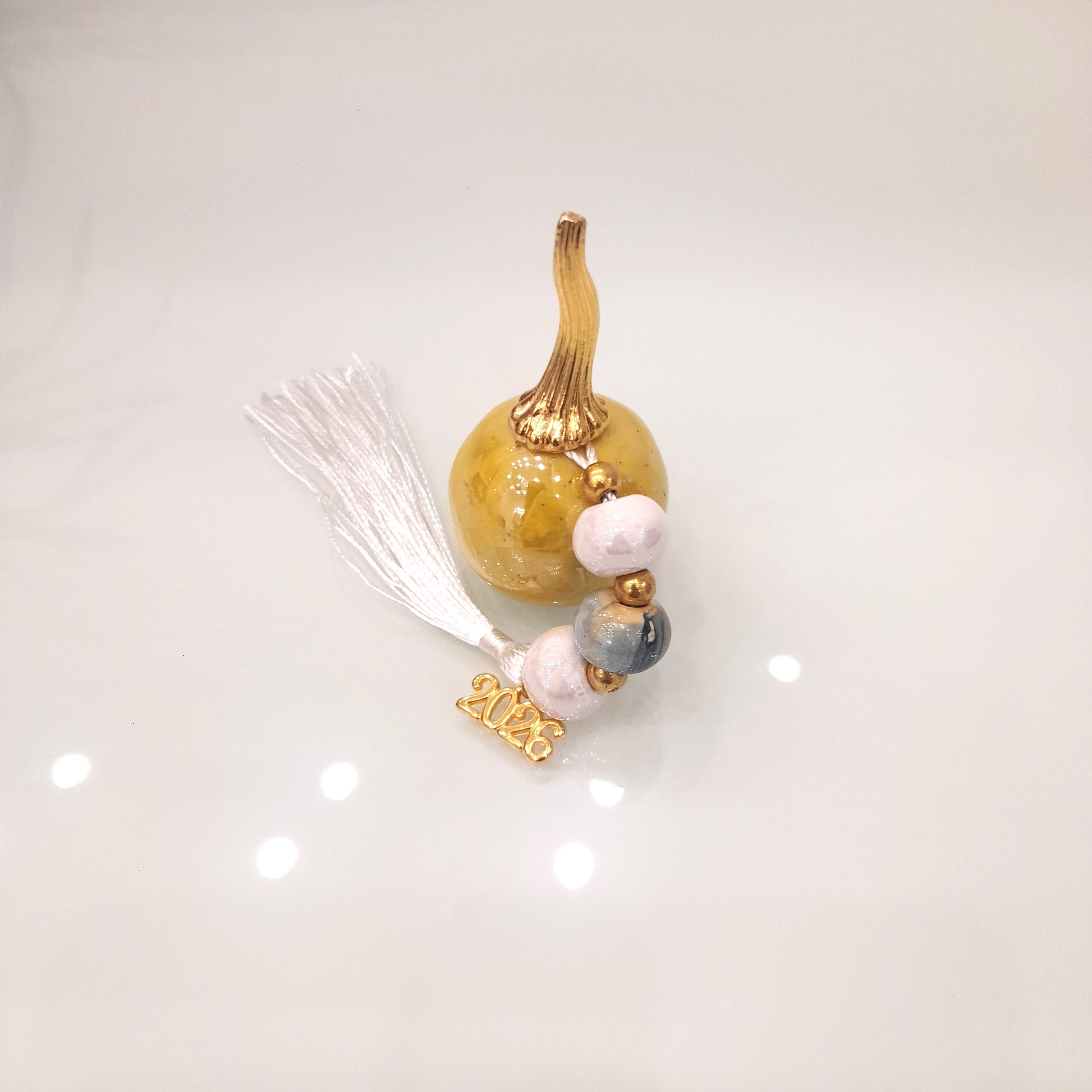 Χριστουγεννιάτικο γούρι κολοκυθάκι 2026 απο μεγάλη κεραμική χάντρα , αιματίτες και μικρές κεραμικές χάντρες.
