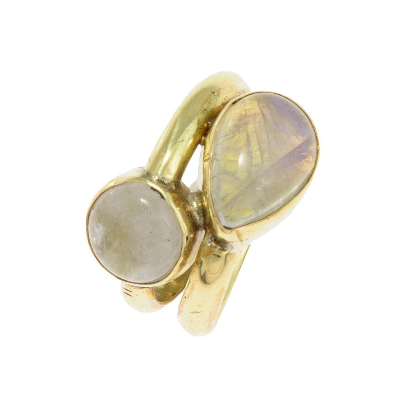 A statement mini cabochons ring made in our atelier in Athens. Adorned with Moonstone gemstone drops of different shapes and sizes .
