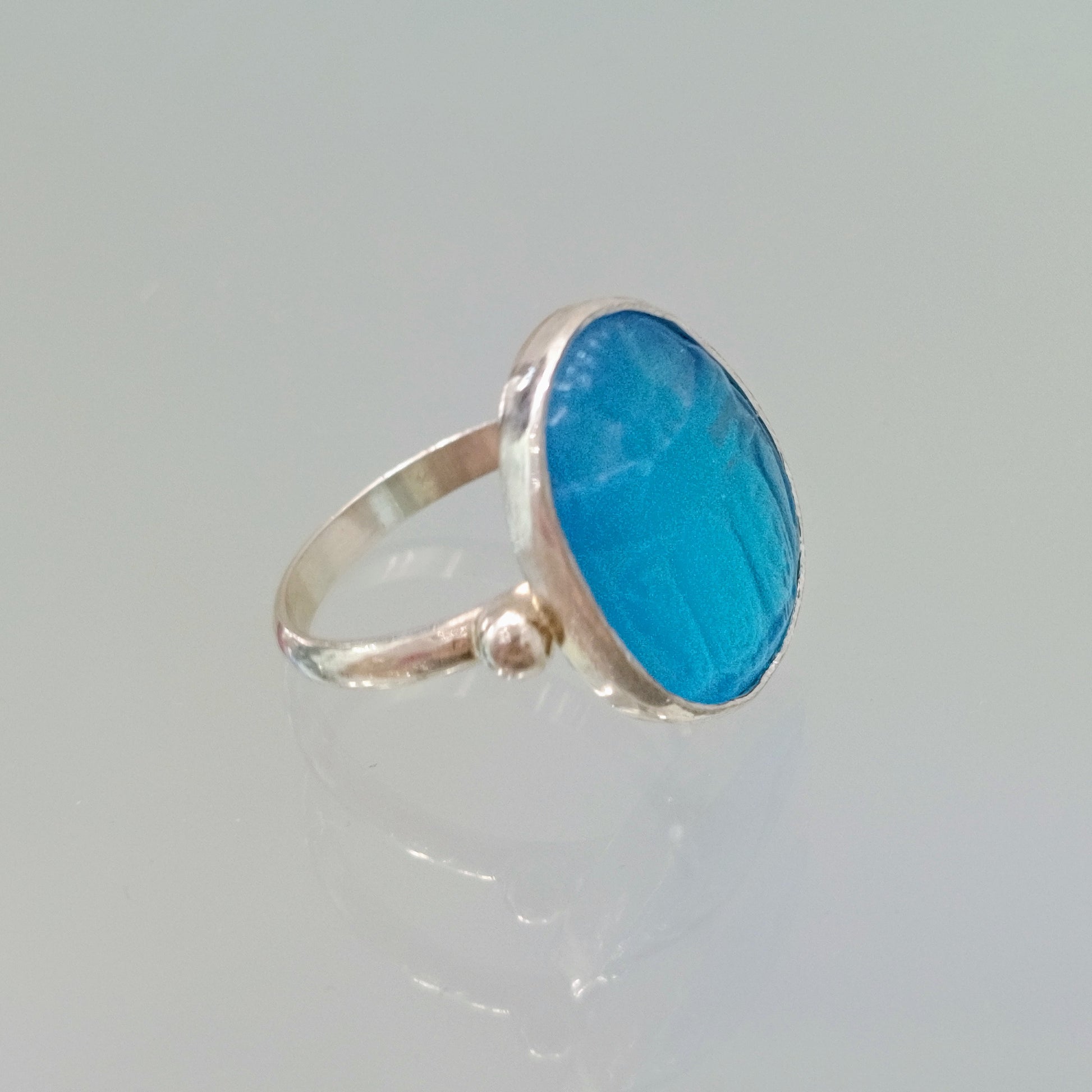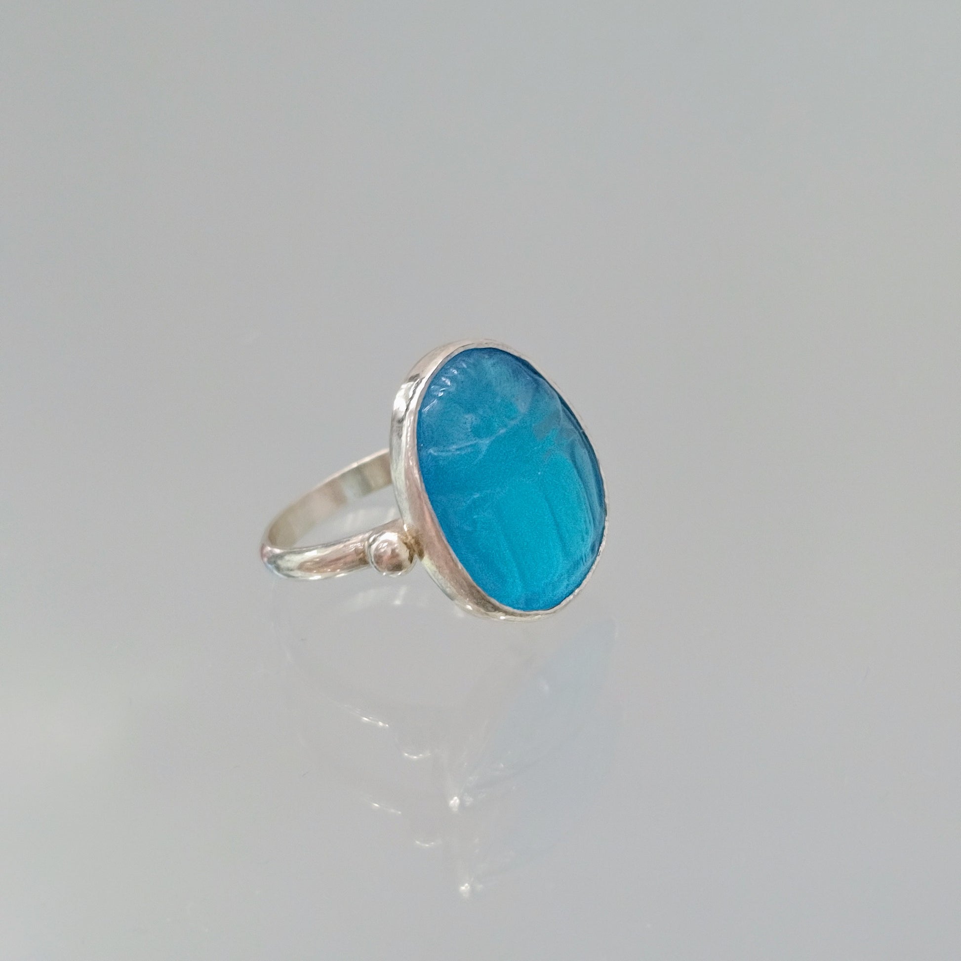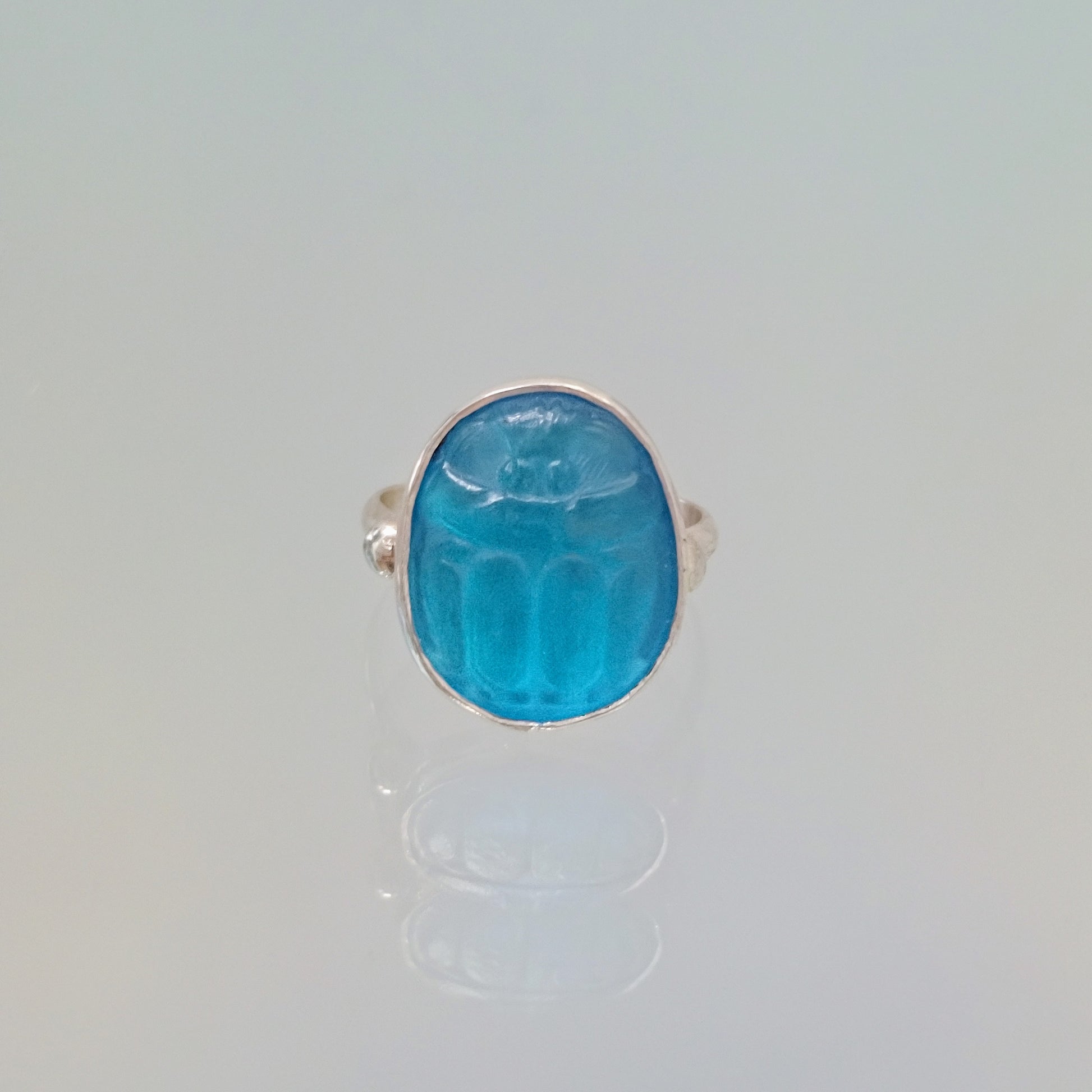 A spectacular ring adorned with a Venetian glass intaglio scarab carved gemstone. Handcrafted in our atelier in Athens.